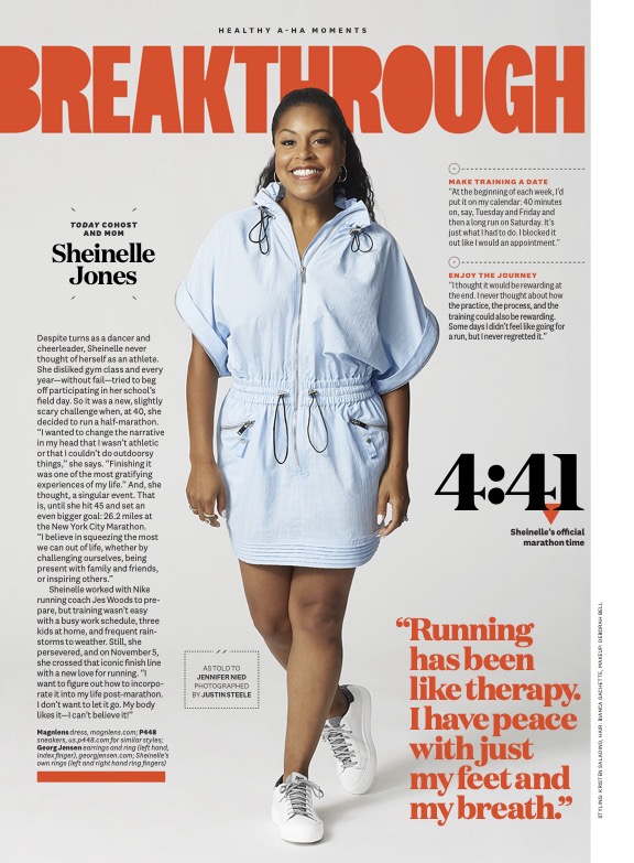 Despite turns as a dancer and cheerleader, Sheinelle never thought of herself as an athlete. She disliked gym class and every year—without fail—tried to beg off participating in her school’s field day. So it was a new, slightly scary challenge when, at 40, she decided to run a half-marathon…