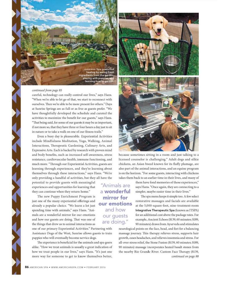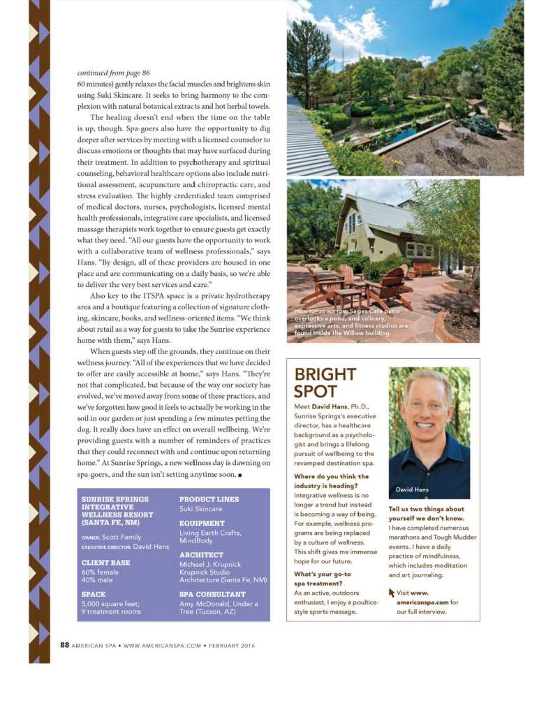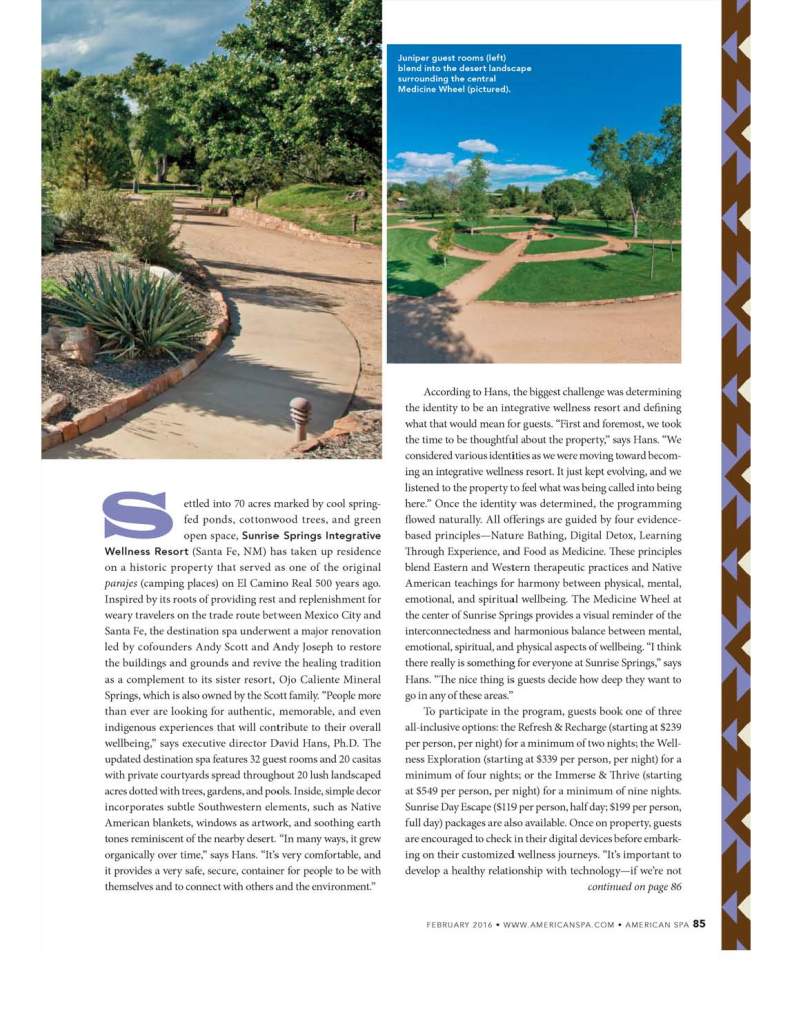 - Sunrise Springs Integrative Wellness Resort (Santa Fe, NM)
